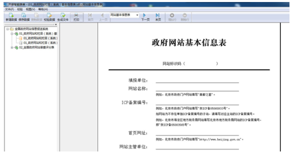 填報(bào)單位運(yùn)行客戶端軟件,打開“政府網(wǎng)站和欄目(系統(tǒng))基本信息表”并新建數(shù)據(jù),填寫政府網(wǎng)站和欄目(系統(tǒng))基本信息并保存。表單所有信息項(xiàng)均為必填項(xiàng),如確無內(nèi)容請(qǐng)?zhí)顚憽盁o”。