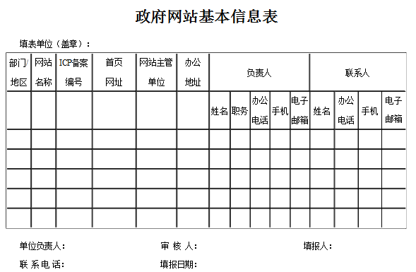 ?。ㄒ唬┛h級(jí)以上人民政府辦公廳(室)要組織做好本級(jí)政府及部門政府網(wǎng)站的統(tǒng)計(jì)摸底和檢查整改工作,填報(bào)《政府網(wǎng)站基本信息表》、《政府網(wǎng)站欄目(系統(tǒng))基本信息表》和《全國(guó)政府網(wǎng)站普查評(píng)分表》,逐級(jí)上報(bào)有關(guān)情況。