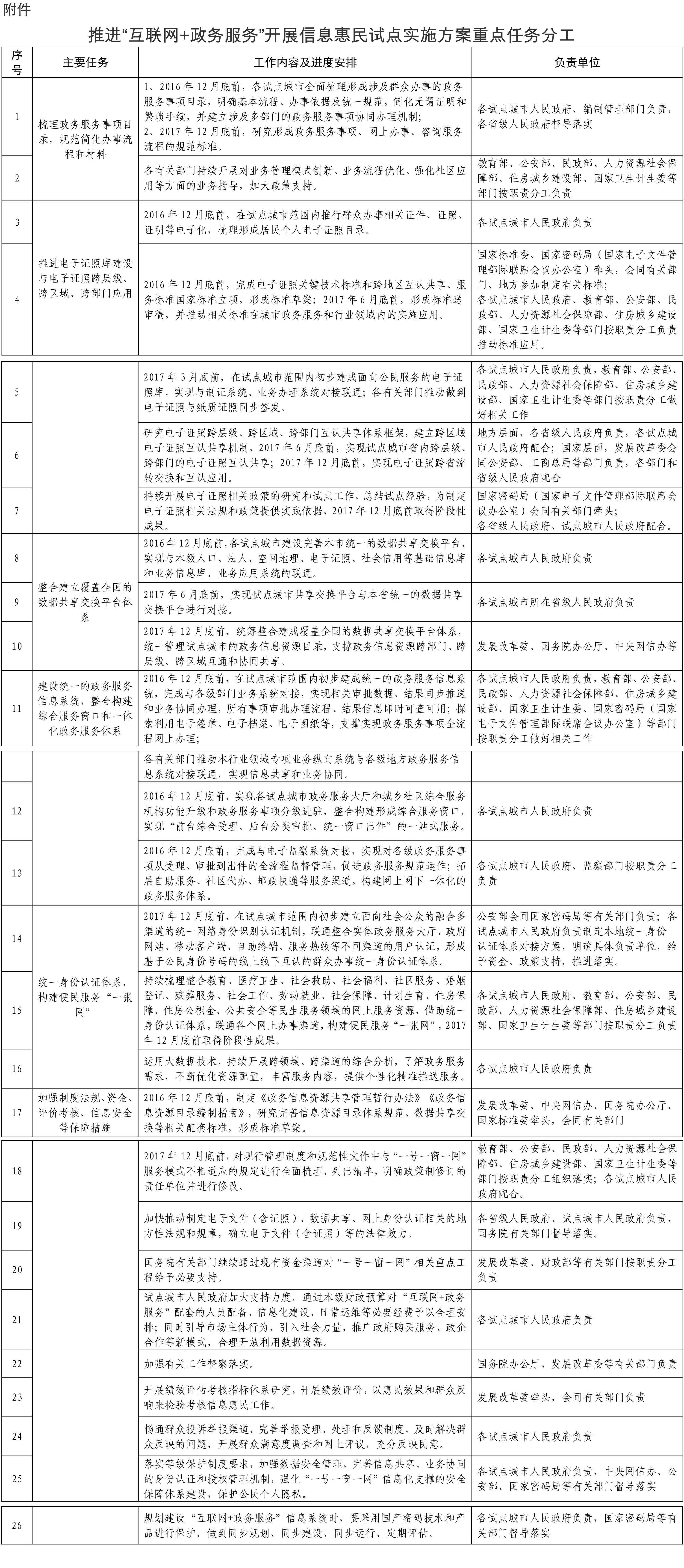 附件:推進(jìn)“互聯(lián)網(wǎng)+政務(wù)服務(wù)”開展信息惠民試點(diǎn)實(shí)施方案重點(diǎn)任務(wù)分工