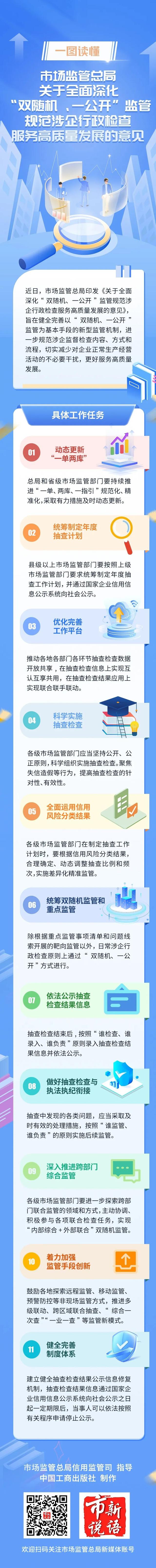 市場(chǎng)監(jiān)管總局近日印發(fā)《關(guān)于全面深化“雙隨機(jī)、一公開(kāi)”監(jiān)管規(guī)范涉企行政檢查服務(wù)高質(zhì)量發(fā)展的意見(jiàn)》(以下簡(jiǎn)稱(chēng)《意見(jiàn)》),旨在健全完善以“雙隨機(jī)、一公開(kāi)”監(jiān)管為基本手段的新型監(jiān)管機(jī)制,進(jìn)一步規(guī)范涉企監(jiān)督檢查內(nèi)容、方式和流程,持續(xù)提升協(xié)同監(jiān)管能力,更好服務(wù)高質(zhì)量發(fā)展。