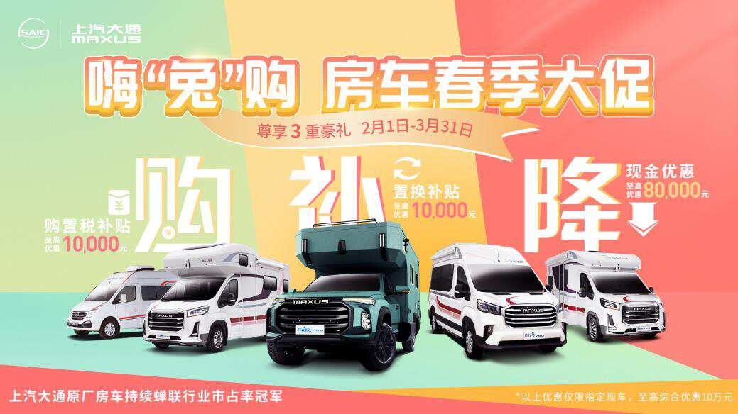 房車品牌怎么選?通過上述自由炮皮卡房車與上汽大通MAXUS探索家T90縱橫的比較,我們可以發(fā)現(xiàn)后者確實(shí)更具優(yōu)勢,值得大家為之選擇。當(dāng)然,作為房車行業(yè)整體銷量第 一的上汽大通MAXUS,并不是只有這一款車型,品牌旗下房車車型種類齊全,且價(jià)格跨度大,原廠自行式房車價(jià)格區(qū)間從19.98W至288W元不等,B型C型各類布局都可自由選擇。而且,現(xiàn)在入手上汽大通MAXUS原廠房車指定車型還可享購置稅補(bǔ)貼至高1萬元、置換補(bǔ)貼至高1萬元、現(xiàn)金優(yōu)惠至高8萬的三重豪禮,綜合至高優(yōu)惠10萬元更是劃算不已!