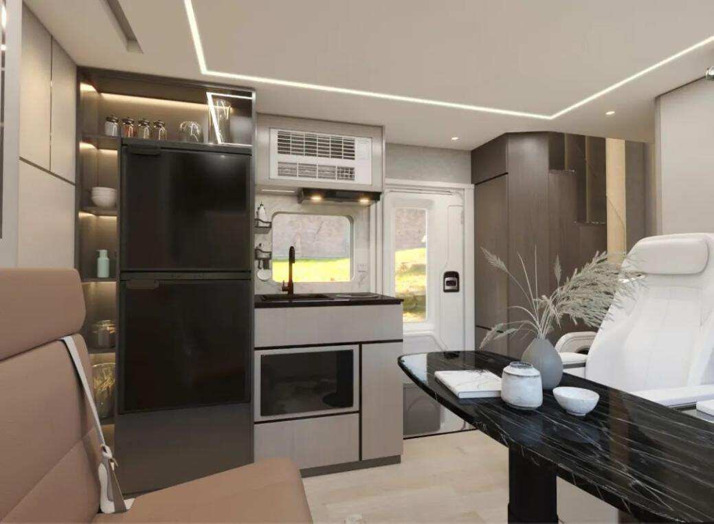而且上汽大通MAXUS探索家·珠峰還擁有別墅級別的內(nèi)飾配置,讓用戶尊享歡暢生活。比如其內(nèi)搭載了雙50吋投影和4區(qū)獨(dú)立音響,用戶能夠沉浸式享受劇院級影音娛樂,感受到視聽盛宴。而且一樓還有2個(gè)天王級獨(dú)立前向VIP座椅,能夠支持6向電動調(diào)節(jié)、帶腿托、通風(fēng)、加熱、按摩,可以一鍵150°躺平,幫助掃除疲憊。另外還有一體式實(shí)木電地暖的加持,即使是寒冷的地區(qū),也能享受到在家一般的舒適溫馨。同時(shí)為了給用戶帶來更高的便利性與高級感,房車內(nèi)的駕駛艙還搭配了無鑰匙進(jìn)入,并自帶一鍵啟動功能,科技感滿分!