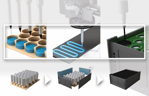 另一方面,在汽車生產(chǎn)中,由于產(chǎn)量大、節(jié)拍高,基本都選擇機(jī)器人自動(dòng)點(diǎn)膠,包括電池包、電控板等部件的制造。雖然自動(dòng)點(diǎn)膠工藝效率高,但其成本與技術(shù)難度也很大,要保證膠水均勻涂抹在需要連接的部件表面上,控制每次的注滴量,使部件之間的連接牢固均勻,以提高電池包的安全性和可靠性,同時(shí)還可降低產(chǎn)品的噪音和震動(dòng),提高車輛的舒適性。