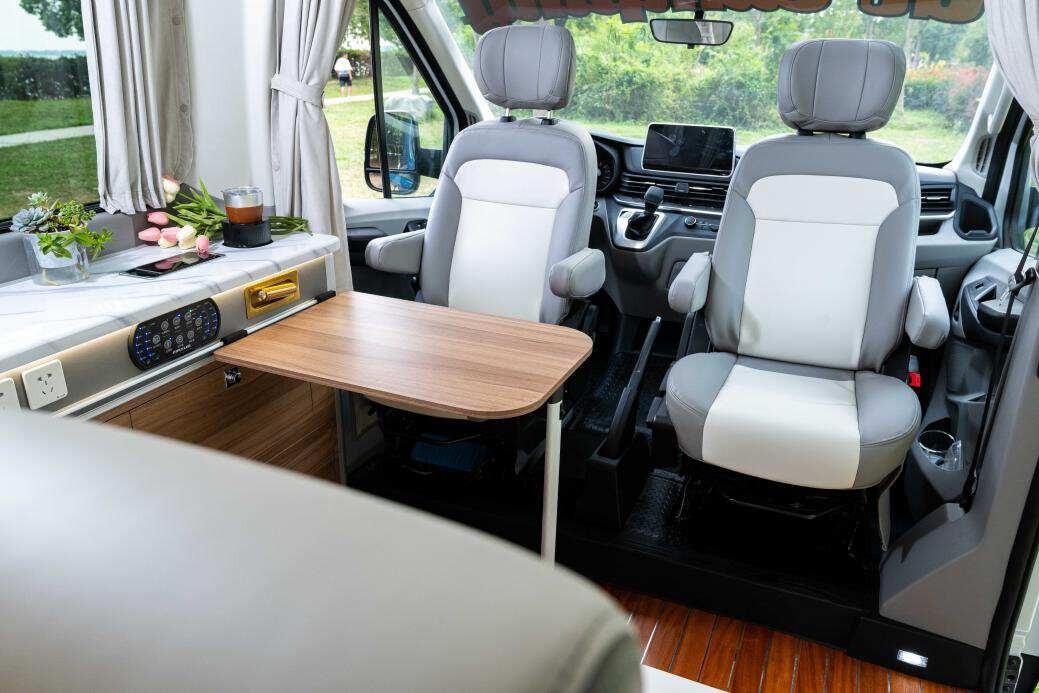 上汽大通MAXUS V90露營(yíng)版的主副駕座椅為360度可旋轉(zhuǎn)座椅,能夠與乘客區(qū)的多功能桌板形成移動(dòng)的桌游館,享受游戲的快樂(lè)。用上汽大通MAXUS V90露營(yíng)版自帶的抽屜式電磁爐和配套精致茶具及清水/灰水箱,則可以煮上一杯香濃的紅茶,在多功能桌板上品茶?;蛘咭部梢韵萝?,利用上汽大通MAXUS V90露營(yíng)版的反向充電功能,做一些簡(jiǎn)單的美食,再打開(kāi)伸縮式遮陽(yáng)蓬,在棚下一邊吃一邊眺望遠(yuǎn)方的山林。