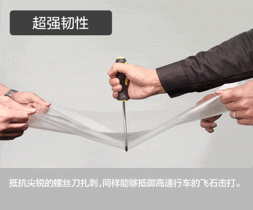 測(cè)試方法:①取小塊邊角料,覆膜撕開,膠層朝上,按住鋪平,放在硬物上;②用手指甲反復(fù)刮;③兩個(gè)現(xiàn)象,背膠刮漏,刮不漏;如果刮了好久后發(fā)現(xiàn),背膠有刮漏,就說(shuō)明基材和膠層脫離了,那這種隱形車衣就不要去選了?!?3、測(cè)韌性】隱形車衣最為人樂(lè)道的功能,就是保護(hù)車漆,能防一些小剮小蹭,而這一切來(lái)自于產(chǎn)品的韌性。所以,如果產(chǎn)品韌性不足,其實(shí),它是不具備保護(hù)車漆的能力的。