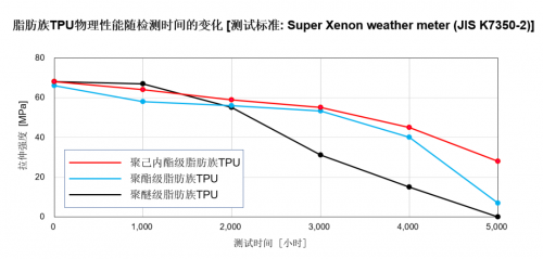 圖1:脂肪族TPU物理性能隨檢測(cè)時(shí)間變化