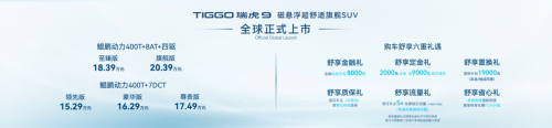 5月30日,奇瑞汽車重磅打造的TIGGO瑞虎9正式全球上市,共推出領(lǐng) 先版、豪華版、尊貴版、至臻版、旗艦版5款車型,官方指導(dǎo)價(jià)15.29-20.39萬元。針對購車用戶特推出6重驚喜,為用戶帶來買無憂、用無憂、養(yǎng)無憂的全新價(jià)值體驗(yàn)。
