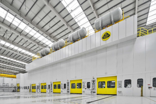 沖壓車間采用全球先進的五序全自動伺服沖壓設備,可實現(xiàn)更為復雜造型沖壓件的制造,零件成型更充分,從根本上保證了零件的尺寸精度和車身造型線條的一致性,滿足路特斯對于極致空氣動力學復雜設計的制造需求。全自動沖壓線的首臺壓機,擁有高達2500噸的沖壓壓力,達到目前行業(yè)最 大壓力水平,讓復雜造型也能充分塑型,讓每一個風道,都極致精細。