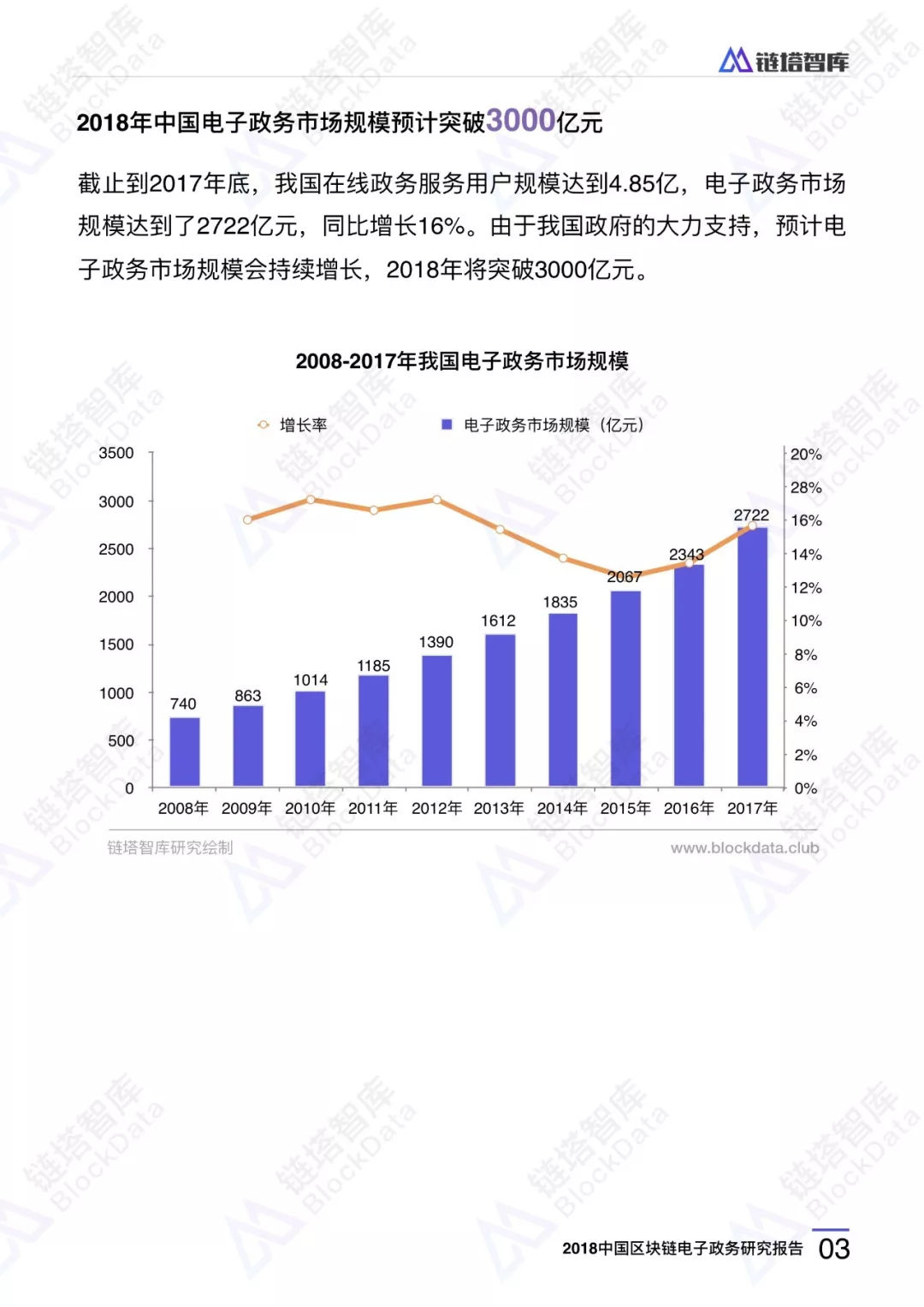 《2018聯(lián)合國電子政務(wù)調(diào)查報告》顯示,我國電子政務(wù)發(fā)展指數(shù)EGDI為0.6811,全球排名第65位,處于中等偏上的位置,仍有較大的上升空間。從市場規(guī)模來看,2017年我國電子政務(wù)市場規(guī)模達2722億元,2018年有望突破3000億元。但處于轉(zhuǎn)型期的電子政務(wù)面臨著數(shù)據(jù)孤島、成本高昂、網(wǎng)絡(luò)安全、效率低下、監(jiān)管缺失等痛點。