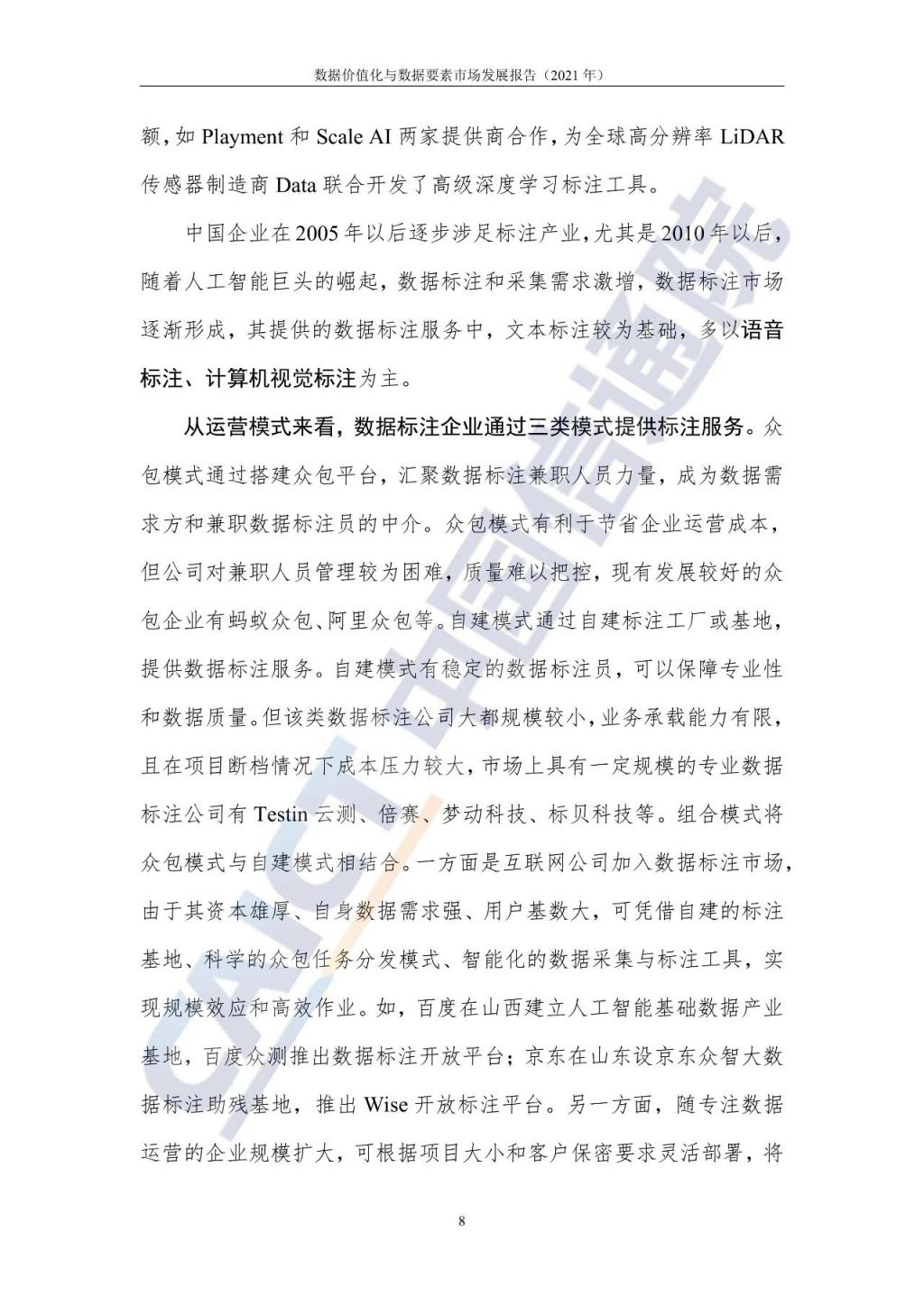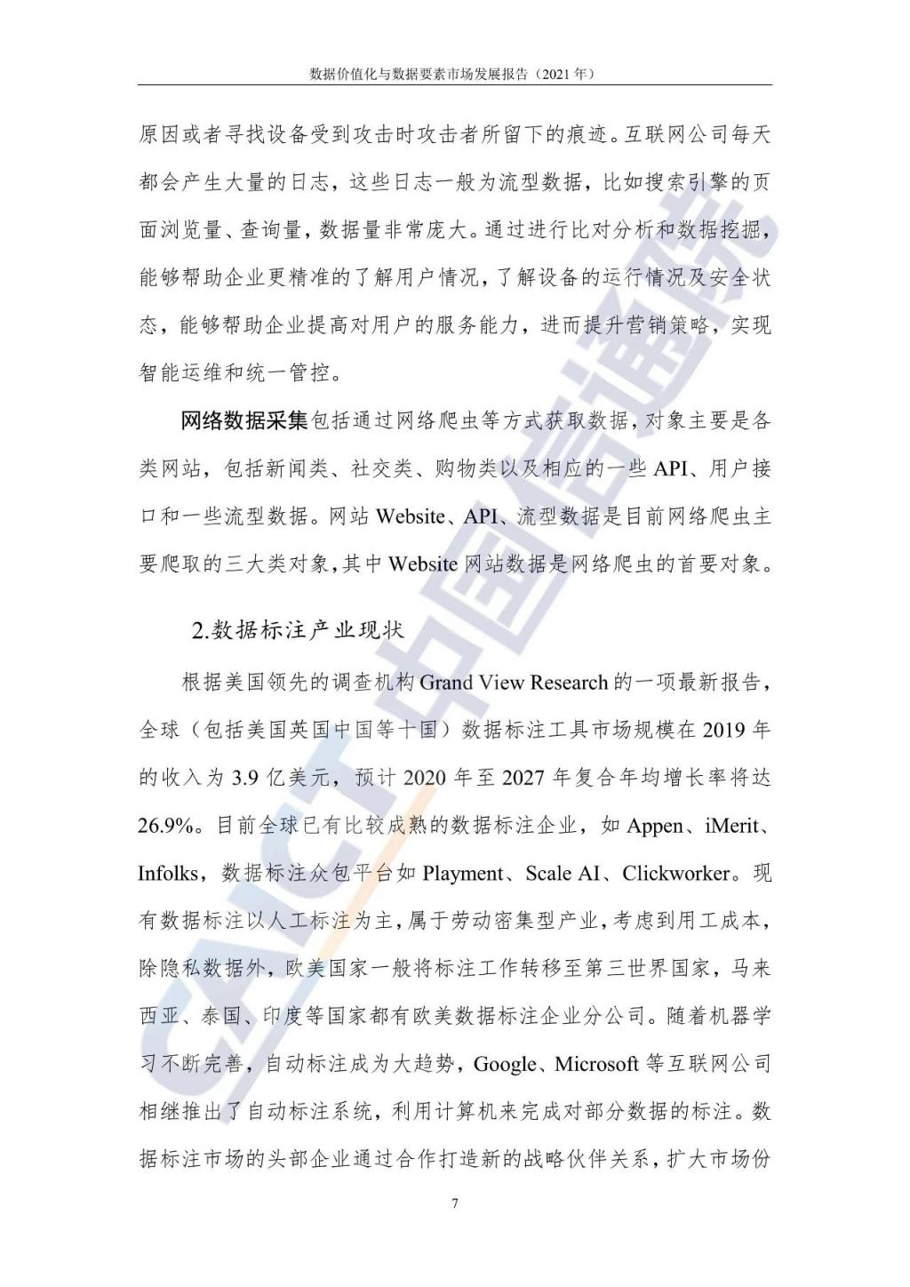 報告建立了數(shù)據(jù)價值化的 " 三化 " 框架,即數(shù)據(jù)資源化、數(shù)據(jù)資產(chǎn)化、數(shù)據(jù)資本化。目前全球尚處于數(shù)據(jù)資源化的初級階段,數(shù)據(jù)采集、數(shù)據(jù)標注有望成為撬動產(chǎn)業(yè)規(guī)模發(fā)展的新引擎。我國數(shù)據(jù)要素市場正在形成包含數(shù)據(jù)交易主體、數(shù)據(jù)交易手段、數(shù)據(jù)交易中介、數(shù)據(jù)交易監(jiān)管的 " 四位一體 " 發(fā)展格局。