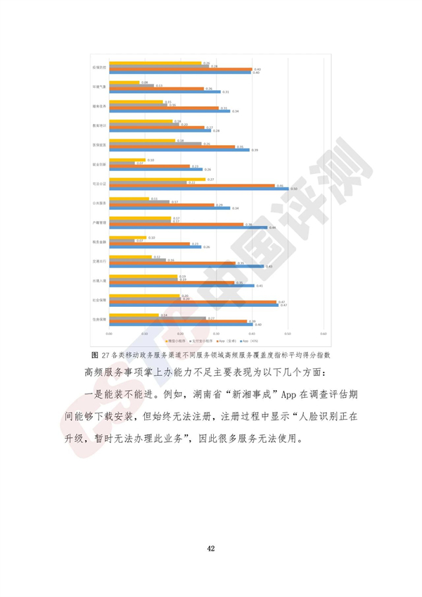 調(diào)查評估顯示,全國各類省級移動政務(wù)服務(wù)渠道平均得分指數(shù)是0.47,整體進入廣泛建設(shè)階段,全國31個?。ㄗ灾螀^(qū)、直轄市)和新疆生產(chǎn)建設(shè)兵團均通過省級移動政務(wù)服務(wù)App或政務(wù)服務(wù)小程序提供移動政務(wù)服務(wù)。