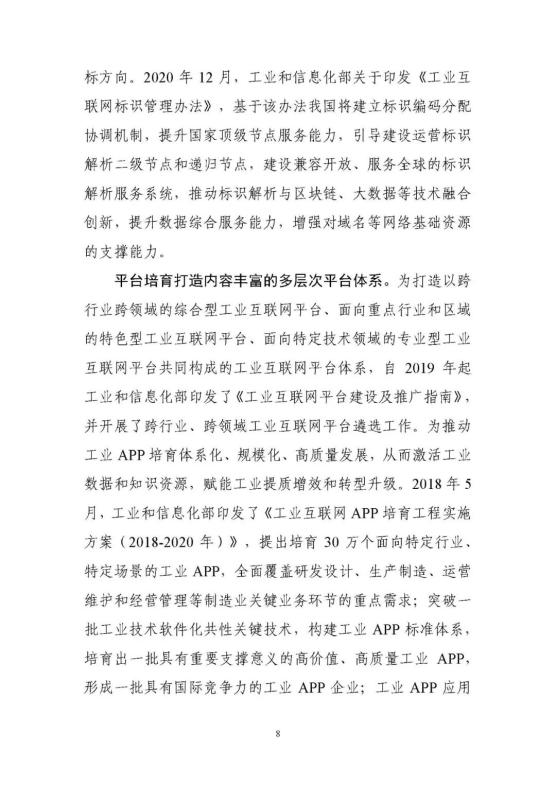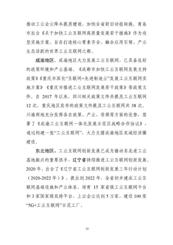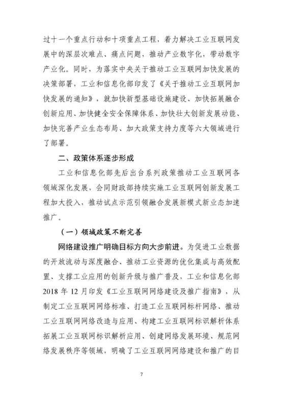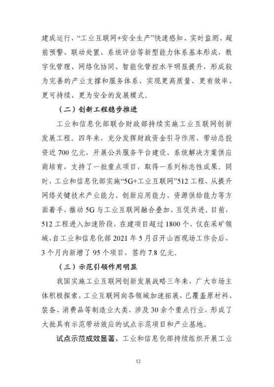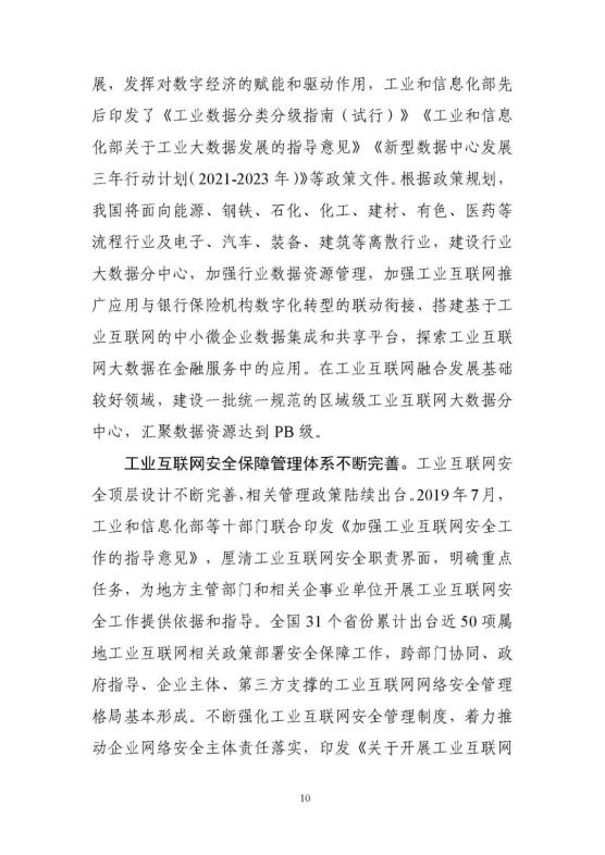 從上到下,政策環(huán)境持續(xù)優(yōu)化。2017年《關(guān)于深化“互聯(lián)網(wǎng)﹢先進(jìn)制造業(yè)”發(fā)展工業(yè)互聯(lián)網(wǎng)的指導(dǎo)意見(jiàn)》正式發(fā)布,在工業(yè)互聯(lián)網(wǎng)專項(xiàng)工作組的統(tǒng)籌協(xié)調(diào)和大力推動(dòng)下,實(shí)施20182020年工業(yè)互聯(lián)網(wǎng)三年行動(dòng)計(jì)劃。今年年初,工信部又發(fā)布了2021-2023年工業(yè)互聯(lián)網(wǎng)三年行動(dòng)計(jì)劃,聚焦基礎(chǔ)設(shè)施、融合應(yīng)用、技術(shù)創(chuàng)新、產(chǎn)業(yè)生態(tài)、安全保障五大方面重點(diǎn)任務(wù),部署了11個(gè)重點(diǎn)行動(dòng)和10個(gè)重點(diǎn)工程。工信部先后出臺(tái)11項(xiàng)政策,針對(duì)性推動(dòng)網(wǎng)絡(luò)、平臺(tái)、數(shù)據(jù)、安全四大領(lǐng)域重點(diǎn)工作。地方支持力度不斷加大,各具特色的地方政策有效覆蓋全國(guó)31個(gè)?。▍^(qū)、市)。實(shí)施工業(yè)互聯(lián)網(wǎng)創(chuàng)新發(fā)展工程,帶動(dòng)總投資近700億元,建設(shè)了一大批公共服務(wù)平臺(tái),形成了一大批具有標(biāo)桿效應(yīng)的試點(diǎn)示范項(xiàng)目,建設(shè)了多個(gè)“5G﹢工業(yè)互聯(lián)網(wǎng)”產(chǎn)業(yè)示范基地。