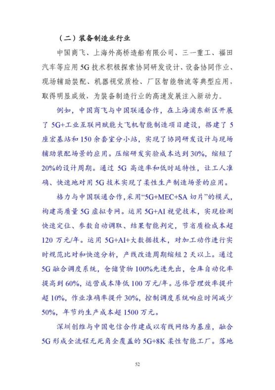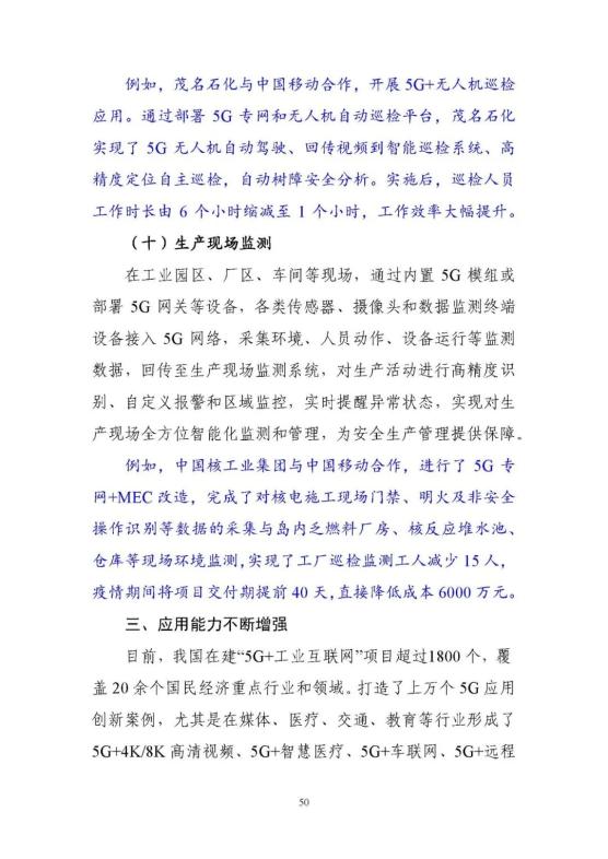 從外到內(nèi),5G賦能構(gòu)筑全球領(lǐng)先優(yōu)勢(shì)。依托我國(guó)全球最大規(guī)模的5G網(wǎng)絡(luò),充分發(fā)揮基礎(chǔ)電信企業(yè)、工業(yè)企業(yè)、設(shè)備企業(yè)、軟件企業(yè)的協(xié)同優(yōu)勢(shì),構(gòu)建了人、機(jī)、物、系統(tǒng)的全面連接,全國(guó)5G﹢工業(yè)互聯(lián)網(wǎng)在建項(xiàng)目已經(jīng)超過(guò)1800個(gè),率先在電子制造、裝備制造、鋼鐵、采礦、電力五大行業(yè)開(kāi)展應(yīng)用示范。依托獨(dú)立組網(wǎng)、5G切片等新技術(shù),推動(dòng)5G由外網(wǎng)公網(wǎng)向工業(yè)網(wǎng)絡(luò)下沉。目前5G工業(yè)模組已經(jīng)下探至千元以下,千萬(wàn)級(jí)工業(yè)模組已經(jīng)接近400元,低成本促使銷量正在快速增長(zhǎng),有效推動(dòng)了應(yīng)用范圍不斷延伸。同時(shí),推動(dòng)在銷售、物流等外部環(huán)節(jié)應(yīng)用向研發(fā)、控制、檢測(cè)等生產(chǎn)制造內(nèi)部環(huán)節(jié)延伸,形成了協(xié)同研發(fā)設(shè)計(jì)、柔性生產(chǎn)制造、無(wú)人智能巡檢等十大應(yīng)用場(chǎng)景。