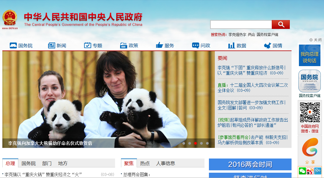 圖1 中國政府網(wǎng)首頁