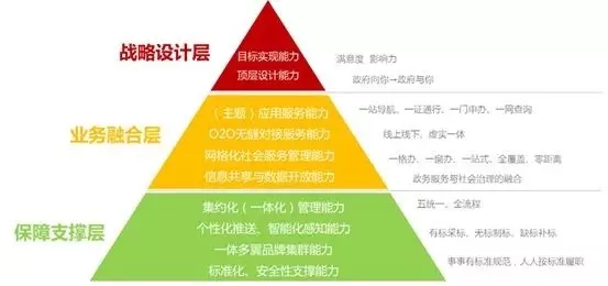 “三用三無”云政府的構(gòu)建包括三個(gè)層面:戰(zhàn)略設(shè)計(jì)層、業(yè)務(wù)融合層、保障支撐層,各個(gè)層面所對(duì)應(yīng)的能力如下圖所示: