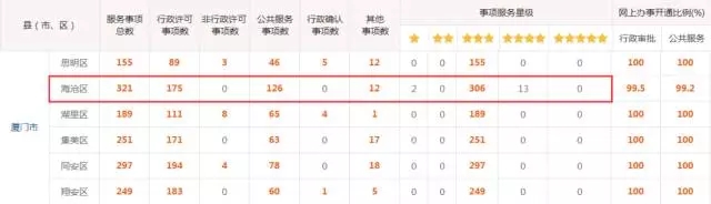 4.用"事項星級標(biāo)準"看海滄服務(wù)