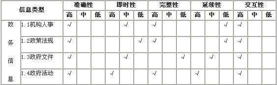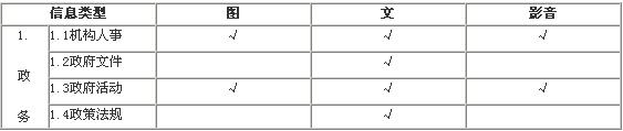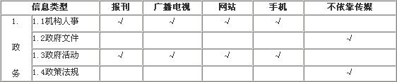 我們圍繞政務(wù)公開工作的實際需求重新定位并細分信息類型,然后根據(jù)信息類型的特性要求(準確性/即時性/完整性/延續(xù)性/交互性)、信息源(黨政機關(guān)/企事業(yè)單位/公眾)、相關(guān)傳媒(圖/文/影音)和媒體類型(報刊/廣播電視/網(wǎng)站/手機)等多套指標體系展開分析和匯總,從而形成具有指導意義的分析成果。(如下表)