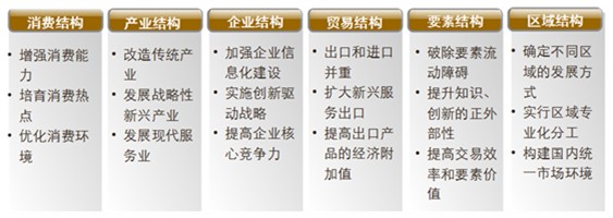 中國經(jīng)濟(jì)轉(zhuǎn)型升級的關(guān)鍵是經(jīng)濟(jì)結(jié)構(gòu)的調(diào)整。經(jīng)濟(jì)結(jié)構(gòu)是一個籠統(tǒng)的概念,從宏觀看包括需求結(jié)構(gòu)、所有制結(jié)構(gòu)、貿(mào)易結(jié)構(gòu)、分配結(jié)構(gòu)、產(chǎn)業(yè)結(jié)構(gòu)、區(qū)域結(jié)構(gòu)、市場結(jié)構(gòu)等,從微觀看包括企業(yè)結(jié)構(gòu)、產(chǎn)品結(jié)構(gòu)、要素結(jié)構(gòu)、技術(shù)結(jié)構(gòu)等?,F(xiàn)階段,我國經(jīng)濟(jì)轉(zhuǎn)型升級,應(yīng)重點關(guān)注以下六大結(jié)構(gòu)調(diào)整。
