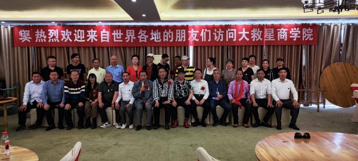 出席大救星商學(xué)院揭牌儀式的部分嘉賓多功能廳合影