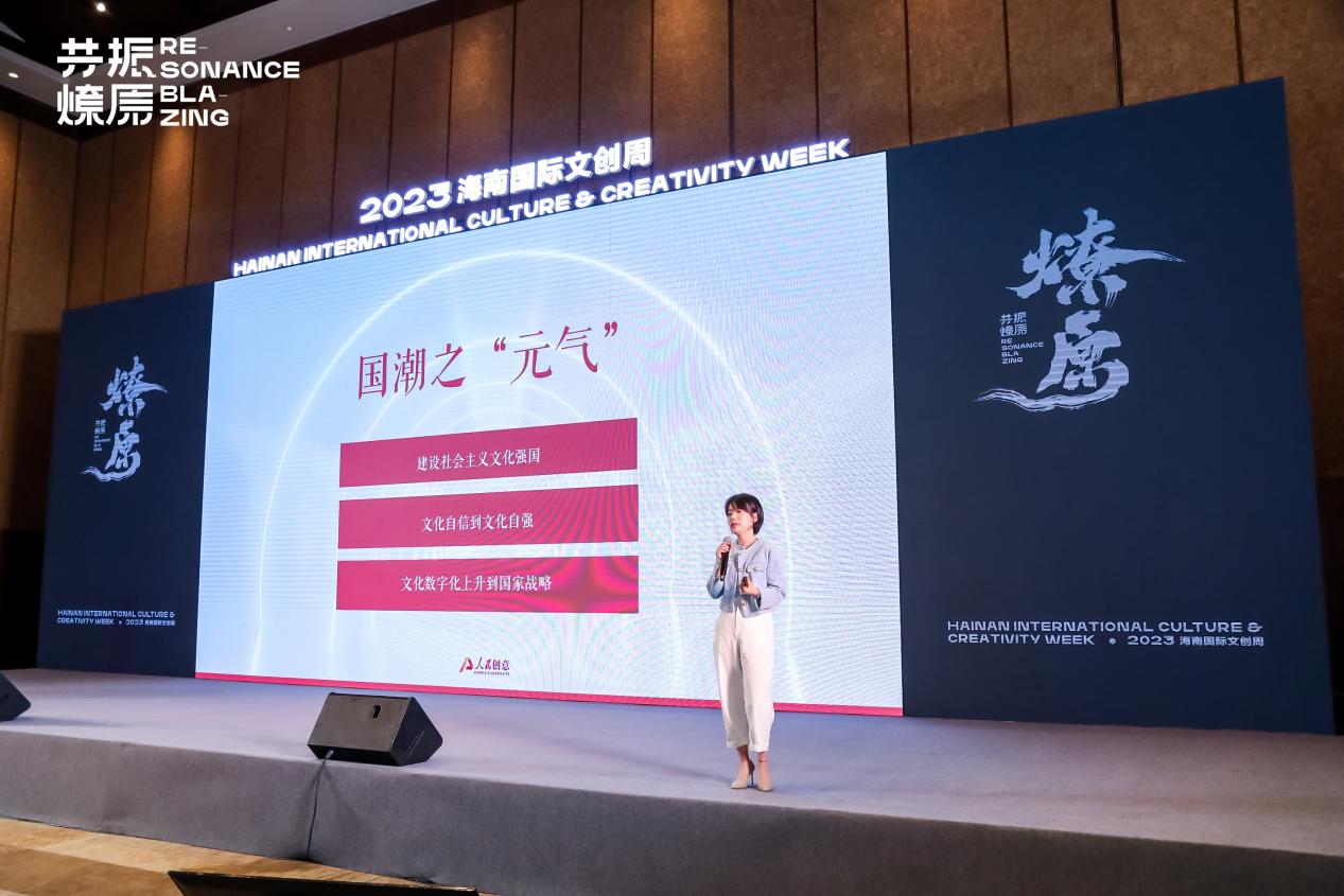 以《點亮數(shù)字時代下的國潮之光》為題,人民創(chuàng)意副總裁王婧從數(shù)字時代下國潮發(fā)展的新案例、新變化和新方向著眼,從文化與產(chǎn)業(yè)、傳媒、科技、場景、消費等具體案例為切入點,創(chuàng)新性提出:隨著中國優(yōu)秀傳統(tǒng)文化越來越成為文化產(chǎn)品、內(nèi)容創(chuàng)造和消費場景的靈感,中國優(yōu)秀傳統(tǒng)文化傳承和創(chuàng)新的文化邊界正在逐漸拓寬。文化從傳統(tǒng)意義上的軟實力,躍升成為一種推動產(chǎn)業(yè)驅(qū)動,賦能產(chǎn)業(yè)發(fā)展的生產(chǎn)力。在此背景下,國潮也從一種標識、標簽、圖庫,成為一種“開放、多元、融匯”思維的象征,成為推動中國傳統(tǒng)文化和潮流IP延伸、產(chǎn)品研發(fā)上的方法論。