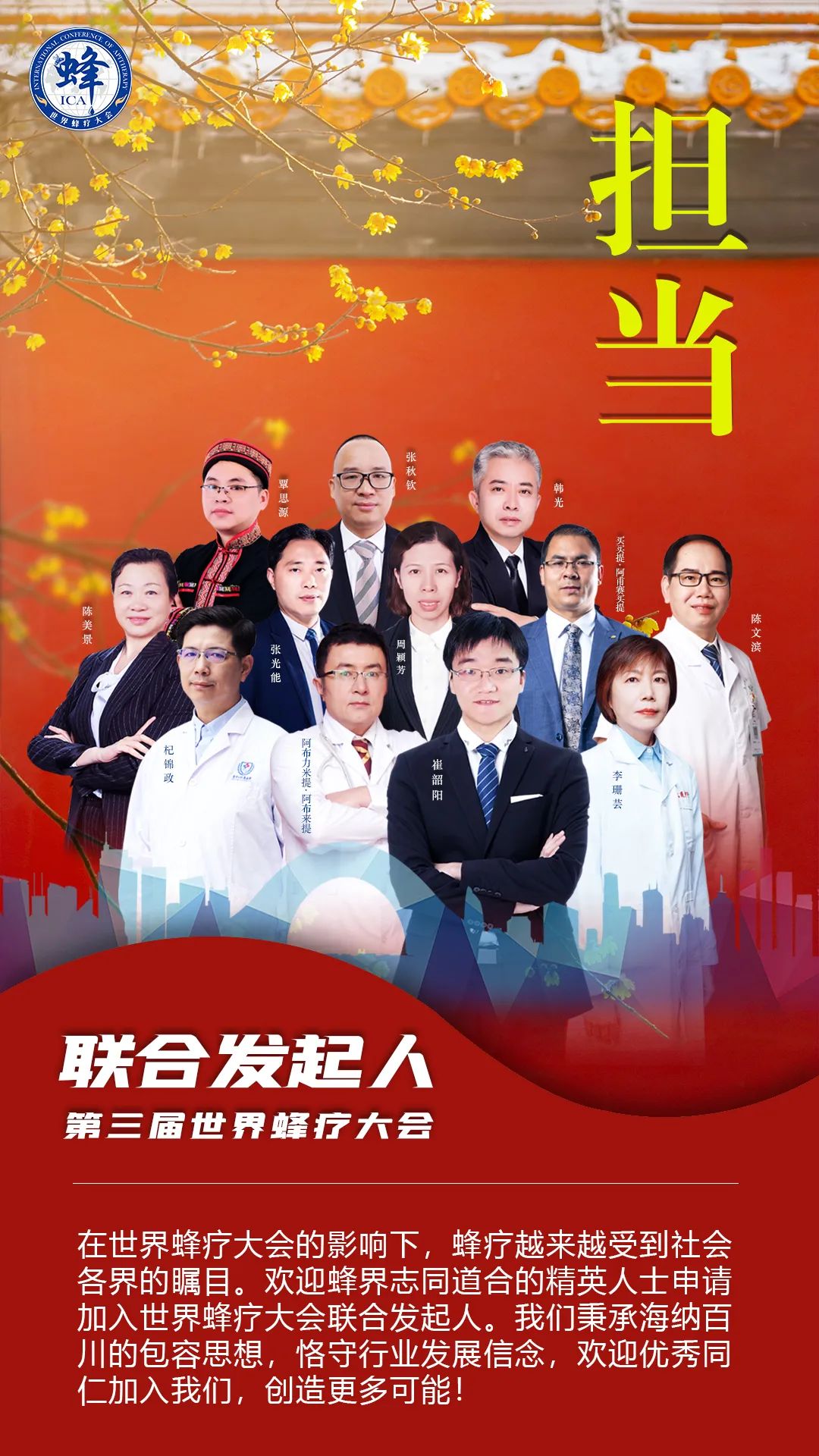 本屆大會(huì)由中共重慶市武隆區(qū)委員會(huì) 、重慶市武隆區(qū)人民政 府指導(dǎo),世界中醫(yī)藥學(xué)會(huì)聯(lián)合會(huì)蜂療專業(yè)委員會(huì)、中國民族醫(yī)藥學(xué)會(huì)主辦,重慶市武隆區(qū)衛(wèi)生健康委員會(huì)、重慶市武隆區(qū)農(nóng)業(yè)農(nóng)村委員會(huì)、重慶市武隆區(qū)文化和旅游發(fā)展委員會(huì)、重慶市武隆區(qū)人民政 府外事辦公室、重慶市武隆區(qū)畜牧發(fā)展中心、重慶市武隆區(qū)中醫(yī)院、廣東省現(xiàn)代南藥研究院、39蜂療網(wǎng)(北京生命十字信息技術(shù)有限公司) 承辦,中華亞太蜂針研究會(huì)、陽光蜂慧(北京)蜜蜂醫(yī)療科學(xué)技術(shù)有限公司協(xié)辦,中國特色鎮(zhèn)發(fā)展論壇組織委員會(huì)辦公室、北京綠色設(shè)計(jì)促進(jìn)會(huì)智庫支持。
