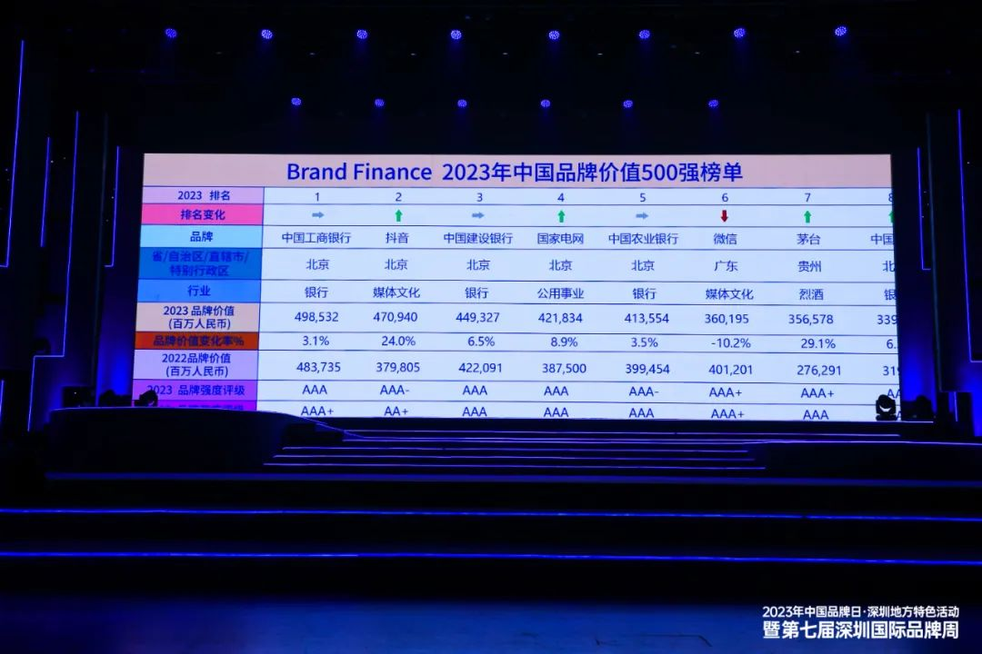 每年在達沃斯世界經濟論壇發(fā)布全球品牌價值500強的國際著名品牌價值評估咨詢機構Brand Finance,聯(lián)合深圳工業(yè)總會在第七屆“深圳國際品牌周”上獨家發(fā)布“2023中國品牌價值500強”中英文榜單。