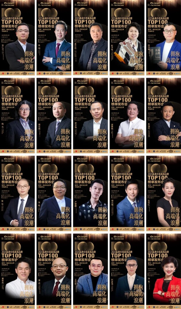 鑒于高端品牌建設(shè)是個新話題,標(biāo)準(zhǔn)不一,本次活動發(fā)布的“2023最具價值高端品牌TOP100”榜單備受關(guān)注,成為峰會的高潮環(huán)節(jié)。在全國工商聯(lián)家具裝飾業(yè)商會秘書長張仁江;高端品牌實(shí)驗(yàn)室主任段傳敏;華南理工大學(xué)品牌研究所所長、廣東省新媒體與品牌傳播重點(diǎn)實(shí)驗(yàn)室主任、教授、博士生導(dǎo)師段淳林;中國傳媒大學(xué)資深教授、廣告學(xué)院博導(dǎo)、中國廣告博物館館長黃升民;CCTV《大國品牌》總出品人吳綱;中外管理傳媒社長兼總編輯楊光;商界傳媒集團(tuán)CEO周云成;高端品牌實(shí)驗(yàn)室研究院執(zhí)行院長劉波濤執(zhí)行院長等權(quán)威專家的共同見證下,“2023最具價值高端品牌TOP100”首批榜單隆重揭曉,代表中國高端品牌的首發(fā)陣容正式亮相。