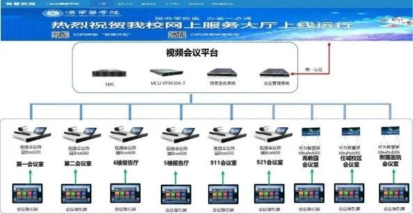 針對濟(jì)寧醫(yī)學(xué)院現(xiàn)有會議室的基本情況,華為智能協(xié)作聯(lián)合華為合作伙伴南京南方電訊有限公司睿景統(tǒng)一協(xié)作管理平臺,為濟(jì)寧醫(yī)學(xué)院打造了易管易控、超清智能的遠(yuǎn)程協(xié)作溝通智慧平臺。會議室視訊設(shè)備采用華為分體式終端BOX600和企業(yè)智慧屏IdeaHub,部分會議室安裝LED大屏、建設(shè)會議信息發(fā)布及指引系統(tǒng)、建設(shè)全新的視頻會議服務(wù)端和終端及相關(guān)音視頻設(shè)備、建設(shè)并對接山東省教育廳視頻會議系統(tǒng)等。本次建設(shè)和升級內(nèi)容包括太白湖校區(qū)第 一會議室、第二會議室、圖文信息樓5樓報(bào)告廳、教學(xué)樓6樓報(bào)告廳,日照校區(qū)辦公樓0911會議室和0921會議室,任城校區(qū)會議室,高教園會議室,附屬醫(yī)院會議室,共計(jì)9間會議室及報(bào)告廳。
