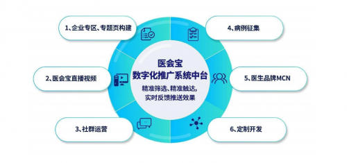 數(shù)字化精準(zhǔn)推廣服務(wù):專區(qū)及專題頁、直播視頻、社群運(yùn)營、病例征集、醫(yī)生品牌MCN、定制開發(fā)。