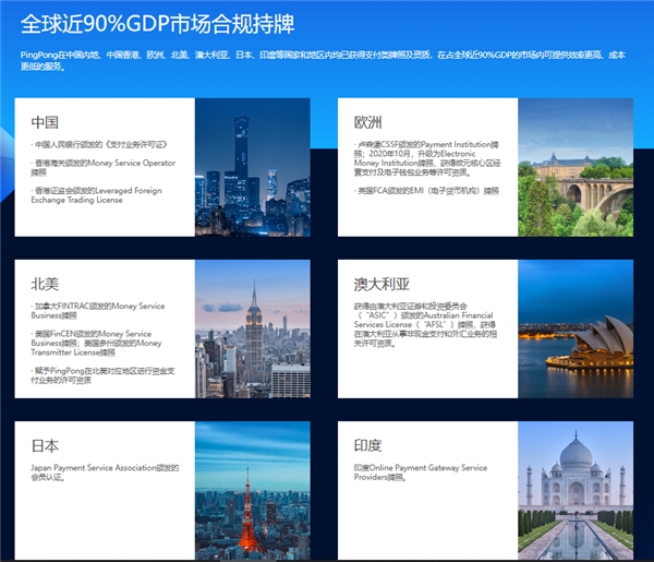 不僅如此,為讓廣大中小外貿(mào)企業(yè)“安全收付,放心收付”,PingPong福貿(mào)在拓展其全球收付服務(wù)網(wǎng)絡(luò)布局的同時,還不斷加強(qiáng)其資金收付安全合規(guī)體系的建設(shè)。目前,PingPong福貿(mào)通過不斷爭取全球主要經(jīng)濟(jì)體國家及地區(qū)的支付牌照及認(rèn)證資質(zhì),已成為國內(nèi)為數(shù)不多同時擁有中國內(nèi)地、中國香港、歐洲、美國、日本等主要經(jīng)濟(jì)體支付類牌照及資質(zhì)的雙邊合規(guī)企業(yè),并擁有含金量極高的盧森堡 EMI 牌照,用實(shí)力為企業(yè)的每一筆資金保駕護(hù)航。