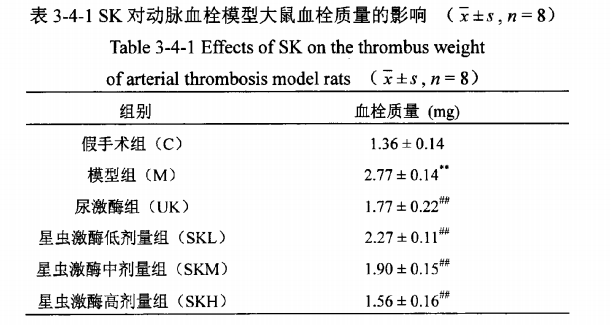 星蟲激酶酶學性質穩(wěn)定,對其體外溶栓活性研究發(fā)現(xiàn),星蟲激酶不僅具有直接和間接降解纖維蛋白的作用,還能夠降解纖維蛋白原,對血栓的形成影響實驗發(fā)現(xiàn)與模型組相比,星蟲激酶對動脈血栓的形成具有顯著抑制作用,血管組織形態(tài)和血液相關指標也得到顯著改善。(摘自萬方數(shù)據)