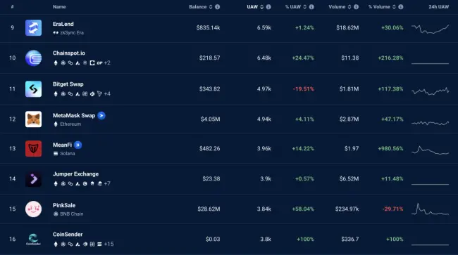 根據(jù) CoinGecko 的統(tǒng)計(jì),Bitget錢(qián)包在全球最受歡迎加密熱錢(qián)包中排名第七。同時(shí),DappRadar 數(shù)據(jù)也顯示, Bitget錢(qián)包的 Swap 在交易量和活躍用戶(hù)數(shù)上,經(jīng)常在所有 DeFi 項(xiàng)目中排名前十,和 MetaMask 基本持平,甚至有時(shí)領(lǐng) 先。在社區(qū)反饋中,Swap 交易也是用戶(hù)最喜愛(ài)和最常用的功能,順滑的交易體驗(yàn)收到很多好評(píng)。