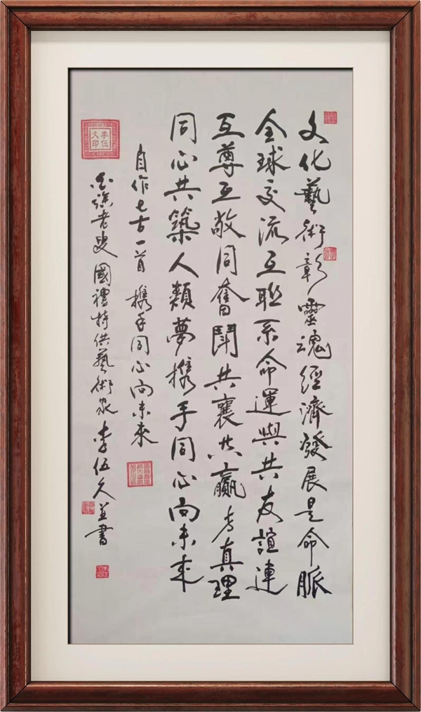李伍久,白族,1938年生,云南劍川梅園人。黨員,中學(xué)高級(jí)教師,一生支邊怒江從事教育、教研工作。業(yè)余喜文樂藝,有新詩、詩詞、歌曲、歌舞、散文、童話、書畫、教育、教研、家教、詩書論文等多種作品問世,并多有獲獎(jiǎng)與出版。先后榮獲"詩詞名家"、”詩壇最具影響力詩人獎(jiǎng)"金獎(jiǎng)榮譽(yù)、"國家一級(jí)書畫師”、“國 家級(jí)書法家”、"國禮特供藝術(shù)家"、“共和國杰出藝術(shù)家”、”共和國人民藝術(shù)家”、“中國國魂藝術(shù)大家”、“中華國禮書法大師”、“國家寶藏級(jí)文藝家”、“中國泰斗級(jí)文藝家”、“世界和平文化傳播大使”、“聯(lián)合國和平藝術(shù)家”、“聯(lián)合國和平書畫院終身院士”、“聯(lián)合國教科文組織藝術(shù)顧問”、“全球十大最具影響力藝術(shù)家”、“中國藝術(shù)最具收藏價(jià)值藝術(shù)家”、"世界十大殿堂級(jí)藝術(shù)大師”等榮譽(yù)稱號(hào),被邀請(qǐng)入駐了"時(shí)代榜樣館”。