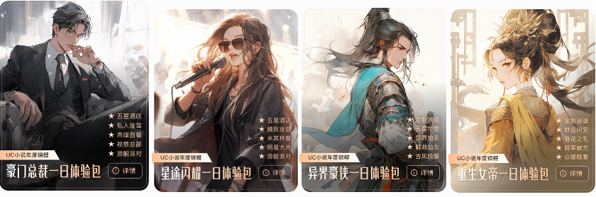 此外,UC小說還特別策劃了“天選錦鯉·好夢一日游”的趣味錦鯉活動,向全體UC小說用戶開放報名并從中抽取錦鯉幸運兒,開啟一場以小說為名的奇幻之旅,體驗與現(xiàn)實世界截然不同的小說主角人生一日體驗。據(jù)悉,這四個小說體驗包里的各項行程都是UC小說根據(jù)用戶閱讀趨勢,精心挑選的四個經(jīng)典品類,完美融合該品類中小說常見的熱門橋段。