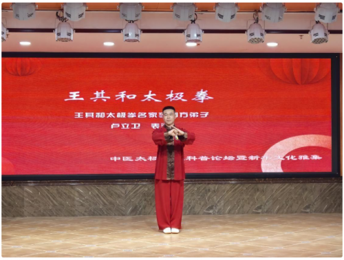 太極拳表演由楊、陳、武、王各派太極拳名家高手集體奉獻(xiàn),今年已至84歲高齡的楊式太極拳名家程良生師傅表演的傳統(tǒng)楊式太極拳依然勁力十足,楊式太極拳名家喬振興之子喬志路、陳式太極拳名家陳照森弟子梁炳權(quán)、武式太極拳名家翟維傳弟子王金祿、王其和太極拳傳人李劍方弟子盧立衛(wèi)的太極拳表演令在場(chǎng)觀眾大飽眼福,豐盛的小寒節(jié)氣養(yǎng)生晚餐也令大家大快朵頤,真可謂視覺(jué)、味覺(jué)齊滿足,養(yǎng)生、享受兩不誤。