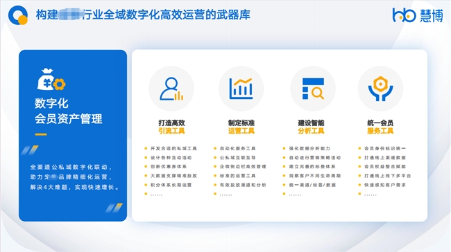 慧博科技,作為國內領 先的全域消費者數字化運營服務商,不僅致力于技術的創(chuàng)新和應用,更在幫助企業(yè)實現數字化轉型的道路上,扮演著引領者和實踐者的雙重角色。