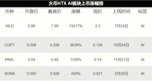 HTX 對 AI 賽道保持持續(xù)關注,分別在 2023 年陸續(xù)上新了 AI 賽道相關的 WLD、CGPT、PAAL,并在最近上線了 SORA。