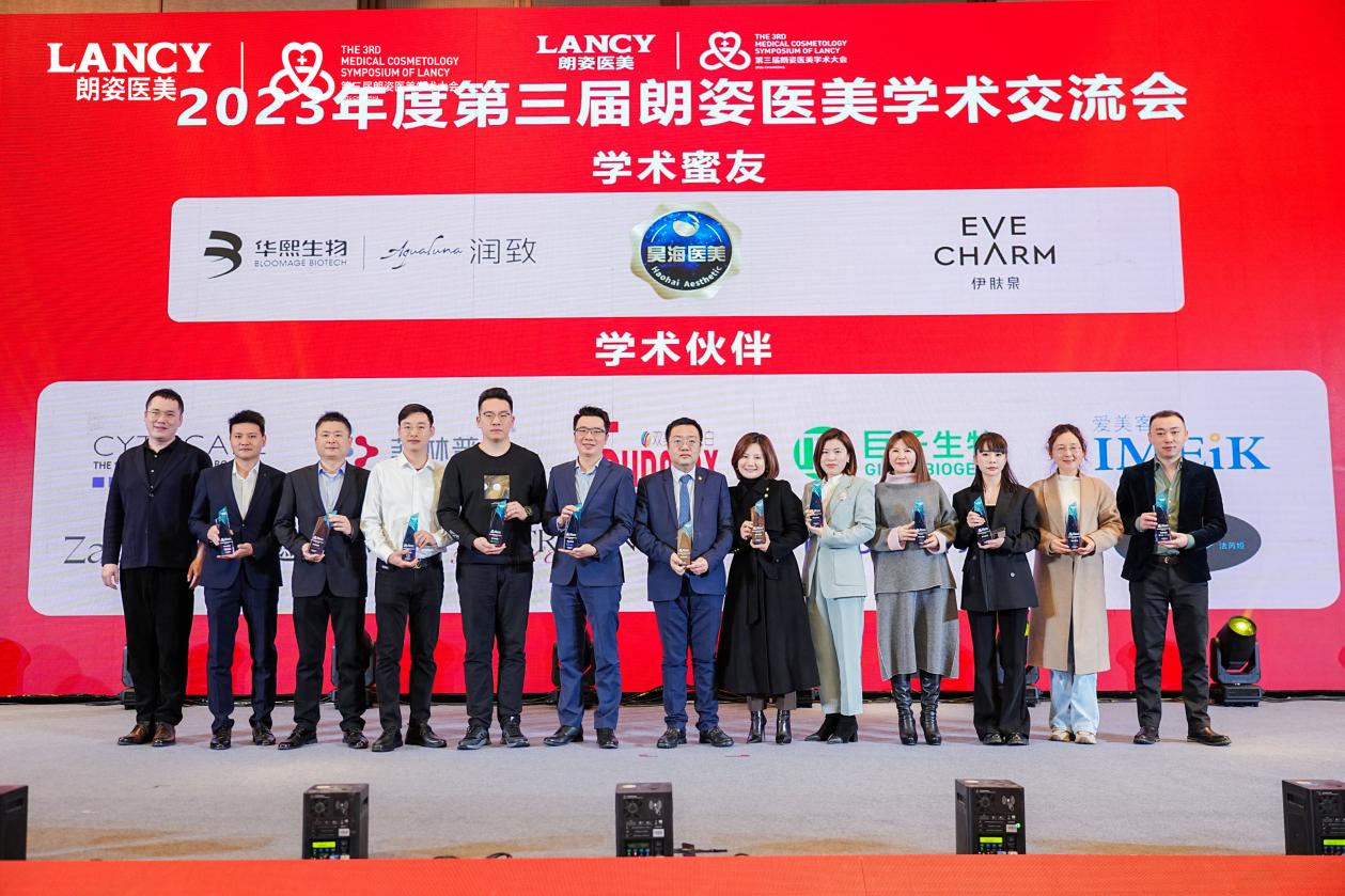 學(xué)術(shù)晚宴上,遠(yuǎn)想生物(伊膚泉)榮獲朗姿集團(tuán)頒發(fā)的“學(xué)術(shù)蜜友”大獎,遠(yuǎn)想生物醫(yī)學(xué)中心醫(yī)學(xué)事務(wù)總監(jiān)孟瓊博士作為代表上臺領(lǐng)獎。這是對遠(yuǎn)想生物(伊膚泉)在學(xué)術(shù)領(lǐng)域積極投入的充分認(rèn)可與嘉獎,也是遠(yuǎn)想生物(伊膚泉)與朗姿集團(tuán)醫(yī)美共研、友誼深耕的一項(xiàng)重要見證。