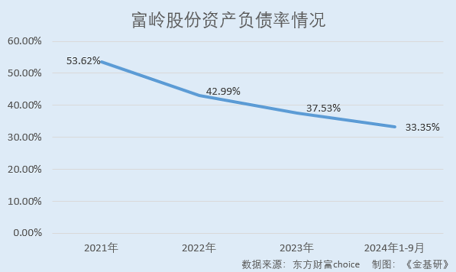 據東方財富choice數據,2021-2023年及2024年1-9月各期末,富嶺股份的資產負債率分別為53.62%、42.99%、37.53%、33.35%;經營活動產生的現金流量凈額分別為2.00億元、3.10億元、3.61億元、1.59億元。