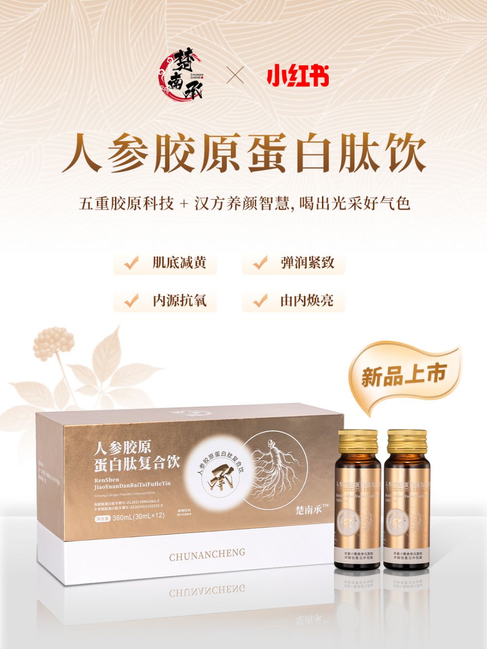 目前,楚南承已推出兩款明星產(chǎn)品:人參膠原蛋白肽復合飲、谷胱甘肽石斛片,以差異化功效滿足多元健康需求。